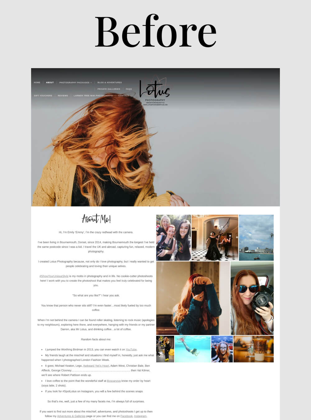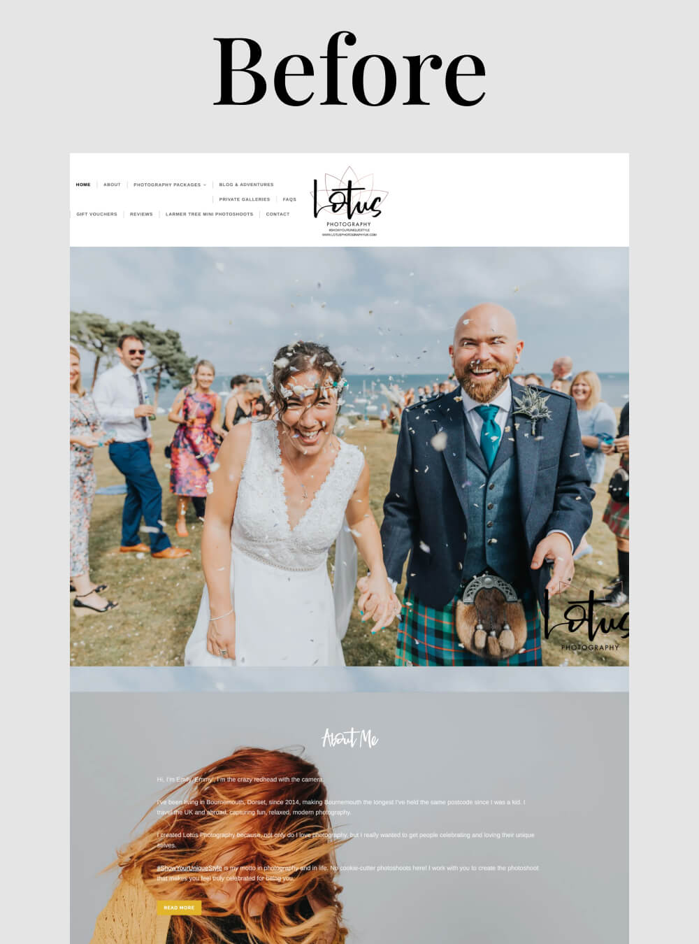 Emily’s brand is all about celebrating couples who aren’t afraid to be themselves. Her motto is #ShowYourUniqueStyle, and she photographs the most wonderfully unconventional weddings. But her website just looked like every other generic photography site out there – nothing was making her stand out.